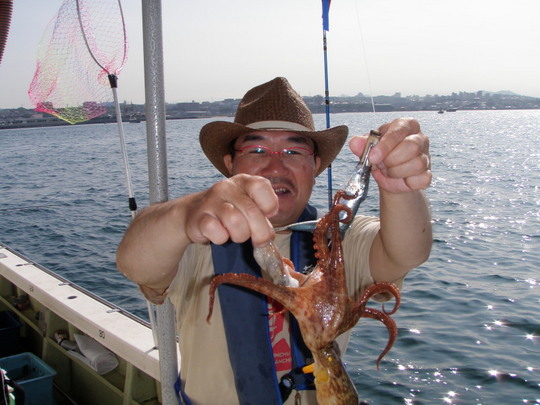 今が旬、この暑いさなかに釣れるタコ。今井さんのブログにもありましたが「やお〜てうまい」麦わらタコ。