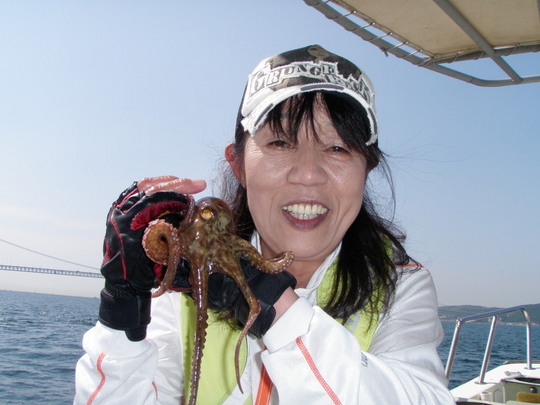 このタコ釣りにカミサンが行ってきました。ビッグフィッシングで先に放送のあった『乙女かい!?キス釣り大会』で、勝ったチームに安田明彦さんからの御褒美という企画で参加させていただきました。今回、藤原正美さん藤原茉央さん辻美和さんとカミサンがタコ釣りに連れて行ってもらったというわけです。