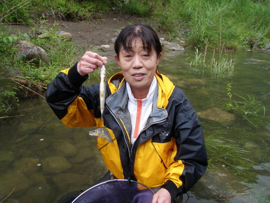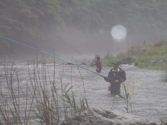 素敵なアユ釣りもこの日は難儀な雨にたたられて釣果の方は今一つ。