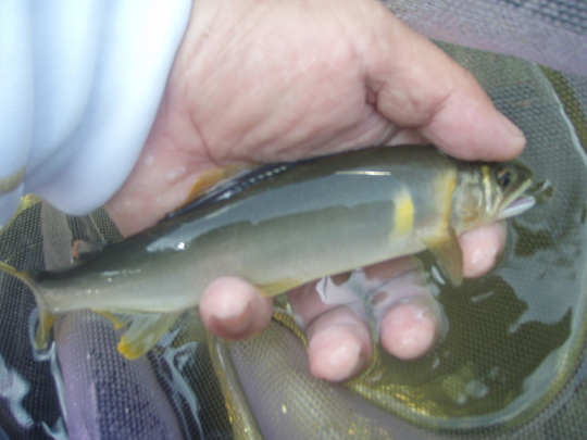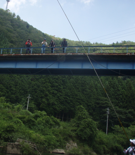 念のため竿を出しましたが、一時間頑張ってガンガンの瀬の流芯に入れてガスンとやっと来ましたが、どんどん流されてついてゆけず、しばらく耐えましたが結局親子どんぶりでオトリごとぱ〜っです。