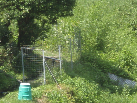 カミサンがあんまりあるかなくてもいい険しくないところを探してあげたい、でも釣荒れもしていない場所・・・農家の方に聞いて秘密の降り口がないか教えてもらったりして・・・。ここは鹿対策で田畑の周りは金網とトタンでバリケードがあります。