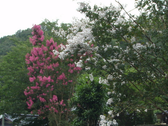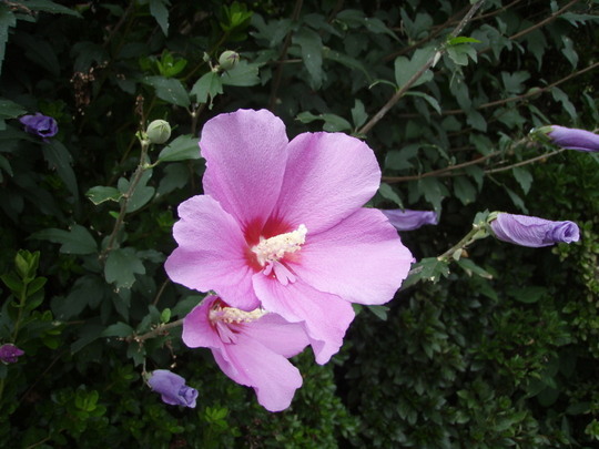 道すがらひときわ目立つ大輪。紅葉葵やら薄紫芙蓉の花が存在を主張していました。どちらも芙蓉科。親戚にハイビスカス。夏の花です。