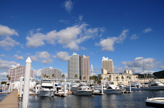 青い空、白い雲、うきあがる建物。とてもきれいです。