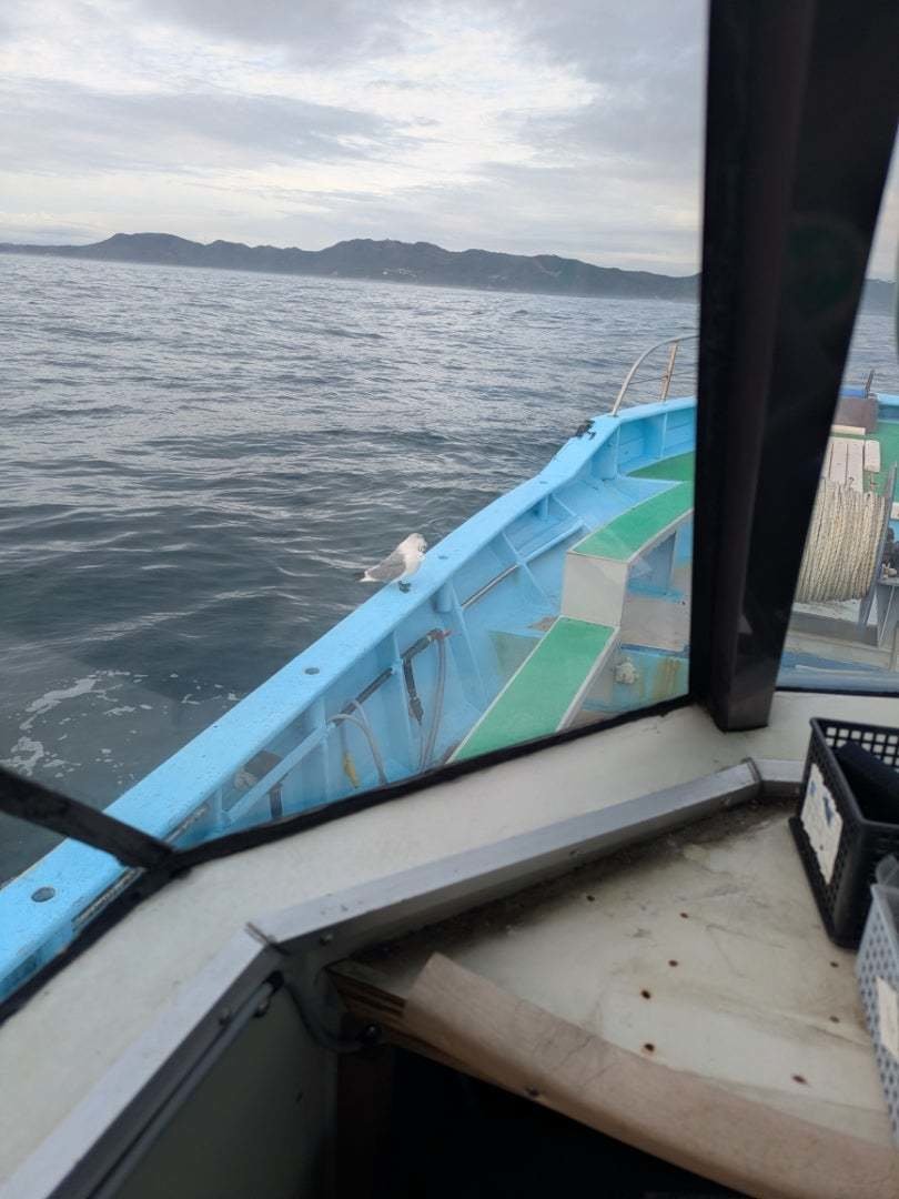 1号船、午前便でイワシの泳がせ釣りです。 北西の風が強く吹いたり弱まったりしていて波もありました。 ベルト反応がたくさんあって期待しましたが、潮の動きが悪かったのかアタリは少なかったです。 アタリがあってものらなかったのが何回かあったみたいですね。 ハリス切れやバラシも見られていましたね。