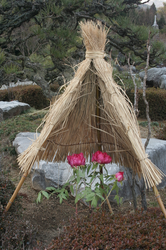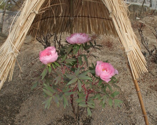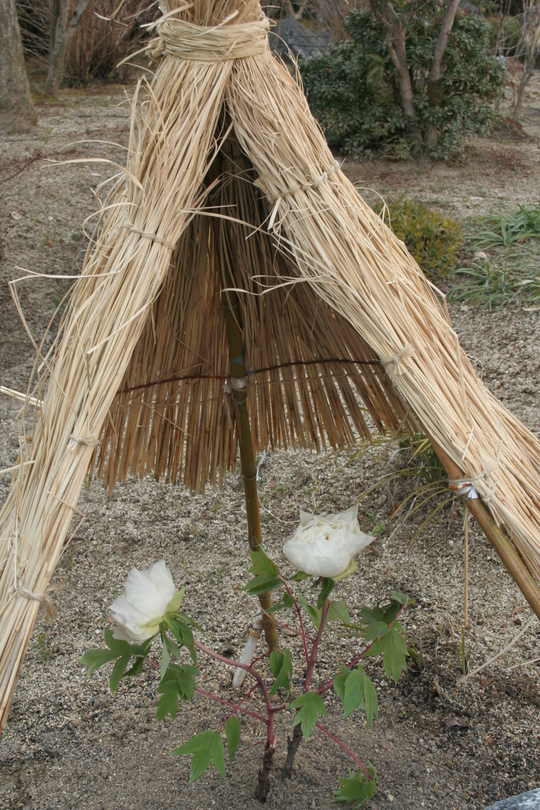雪がこいの中で楚々と咲く寒ボタンは色鮮やかなものが多く、寒空の中で懸命に明るさを振りまいているように見えました。