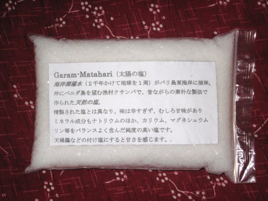 インドネシアのバリ島の住む友人が帰国しています。その彼から帰国するたびにいただくのが、バリ島の塩です。