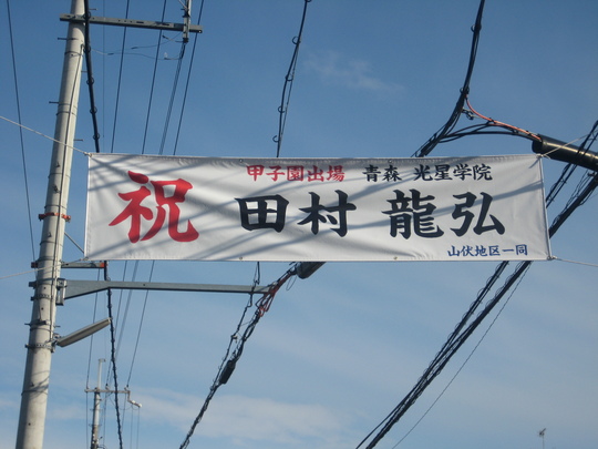 散歩の途中で、こんな横断幕を見つけました。場所は堺市東区の山伏地区。我が家から10分ほどの距離です。