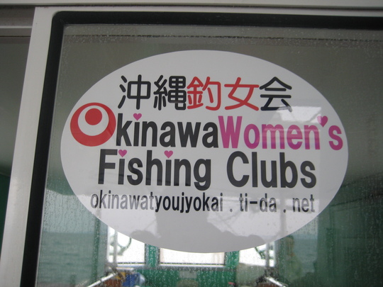沖縄の釣りでお世話になった寄宮フィッシングセンターの船には、各地から訪れた釣り人が所属するクラブやメーカー、雑誌社のステッカーが所狭しと張られていましたが、その中でちょっと興味を惹かれたのが、沖縄釣女会のステッカーでした。