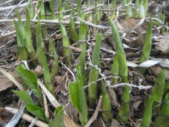 まだ季節的にはちょっと早くて、好物のタラの芽やワラビ、ゼンマイは次回のお楽しみになりましたが、ウルイと呼ばれるオオバギボウシやノカンゾウの若芽を摘むことができました。