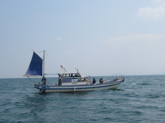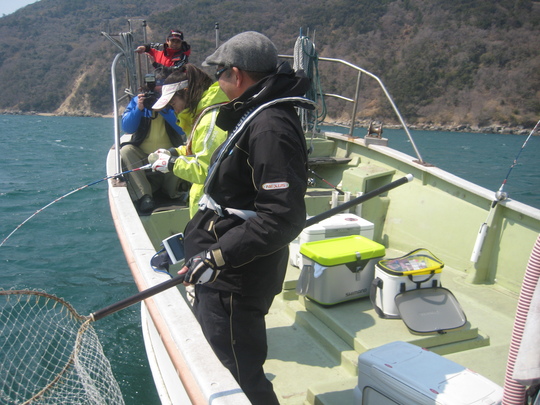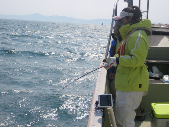 御指摘のとおり小豆島の南岸、地蔵崎の沖で釣りました。現場に付いたときは40、50隻の船がいたのですが、この日はどうしたことか食い悪く、いつの間にか1隻減り、2隻減りで、僕らが帰ることにはプレジャーボートは、ほとんどいなくなりました。福田沖は定置網が入って釣れなくなったと聞いたので、香川へ回ってのですが、、悪いときに当たったみたいです。
