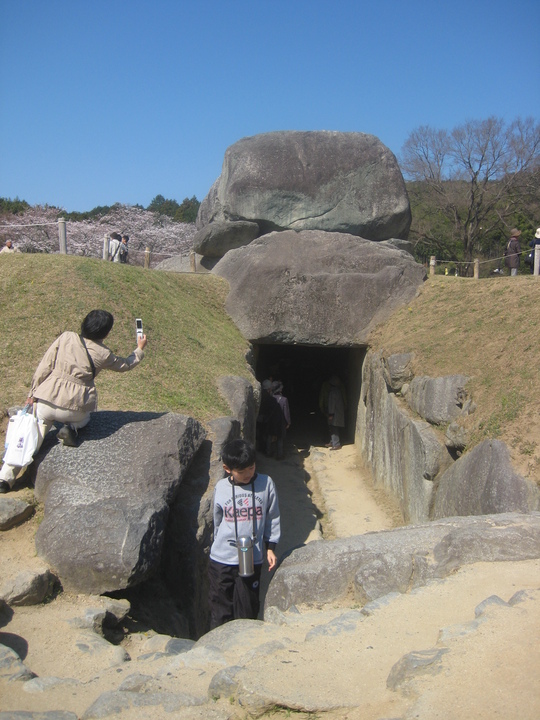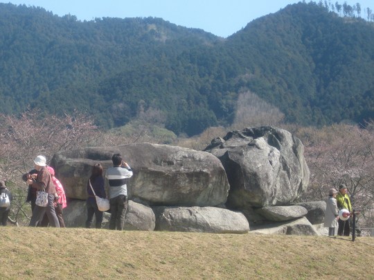 飛鳥の里のメーンコースである石舞台の周辺は、ちょうどサクラが見ごろを迎えたこともあって、大変な人出でした。