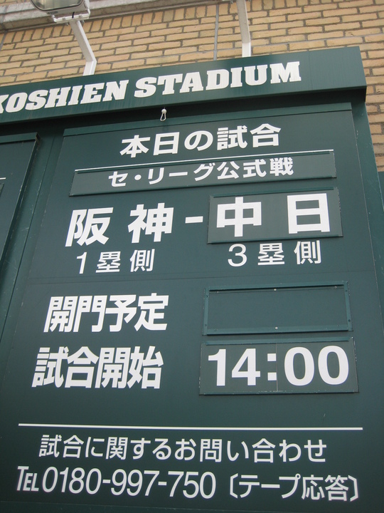 釣りでお世話になっているDスポーツのデスクから、甲子園球場へ野球を見に行かないかとお誘いがありました。14日、土曜日の阪神−中日戦です。