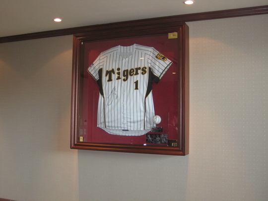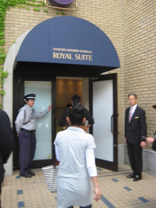 そんなこんなで、久しぶりに夫婦そろって甲子園球場へ出かけました。釣り担当デスクから今回は特別席よ、と聞いていたのですが本当にそうでした。個人ではなかなか入るチャンスがないロイヤルスイート席。いったい中はどうなっているのか?、興味しんしんで部屋に案内されて二度びっくり。