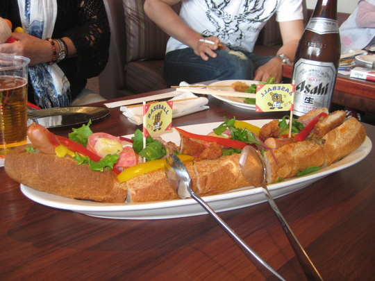部屋には大型テレビに冷蔵庫、10人ぐらいかけられるソファーが用意されていて、部屋専属の若い女性が飲み物や食べ物(もちろん有料)の世話をしてくれます。野球の観戦は、部屋の外に用意されている豪華な席でゆったりと、という趣向になっていました。