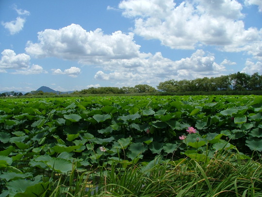 滋賀県草津市の琵琶湖畔にハスの群生地があると聞いて、出かけてみることにしました。ハスは夏の季語。7月から8月にかけて開花します。