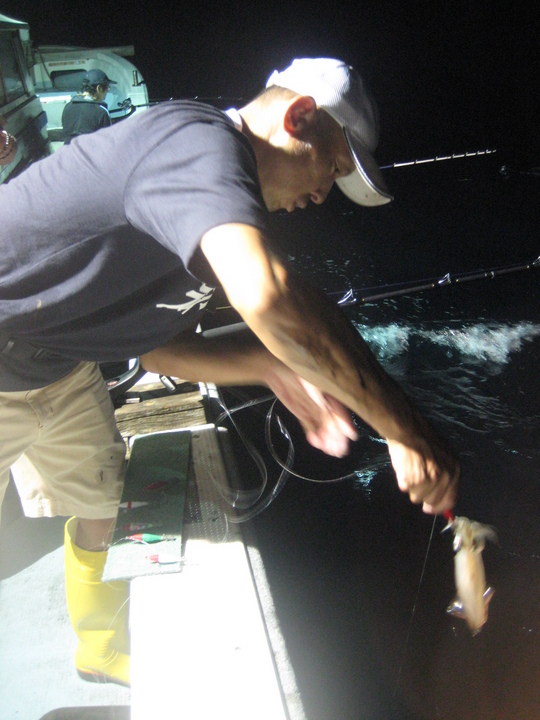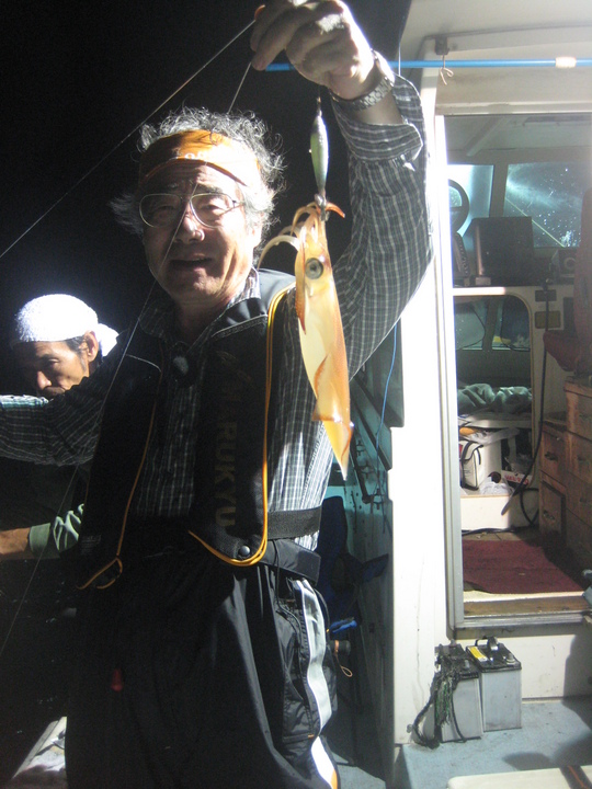 でも、そのうちに波も治まってきて、ようやく本来の楽しいイカ釣りに…。