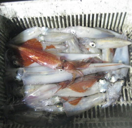 というのも、去年、同じように電話をいただいて釣りに出かけたとき、型ぞろいのシロイカ(ケンサキイカ)が入れ乗りになったことを思い出したからです。