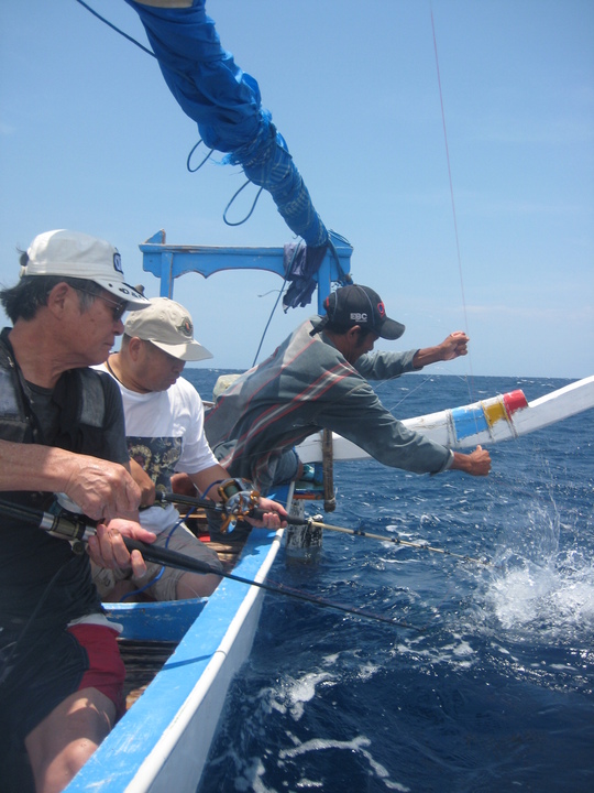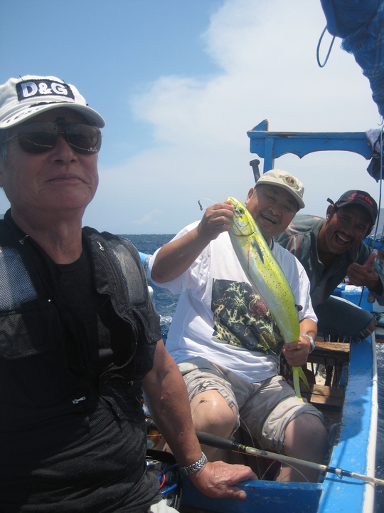 2日目のアメッドの釣りも似たようなものでしたね。東寄りの風が強く、おまけに午後からゆるむはずの潮が速くて80号のオモリをつけても底が取れません。仕方なく水面近くで仕掛けを流して、シイラを3匹釣っただけで帰港しました。