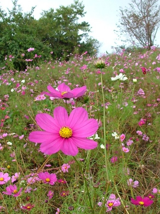 コスモスはすでに見ごろは過ぎていましたが、まだ、鑑賞にたえるほどは残っていました。そして、このときのコスモスよりすごかったのは、360度の一大パノラマでした。晴れた日には、遠く淡路島から四国の山並みが見渡せる素晴らしい展望台でした。