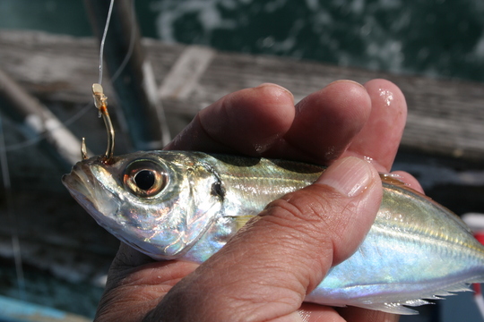 一流し目、まさに交通事故のように僕の仕掛けに掛かってきたメジロとジギングで釣れたサワラが、唯一、魚らしいものでした。