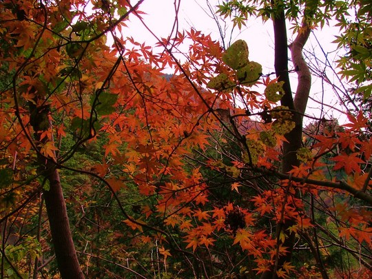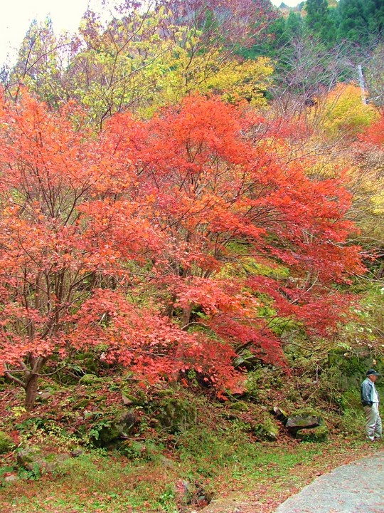 駐車場のおばちゃんの話では、1週間ぐらい前が見ごろで、もうピークは過ぎたというのです。でも、滝にかかる紅葉は、なかなかのものでしたよ。