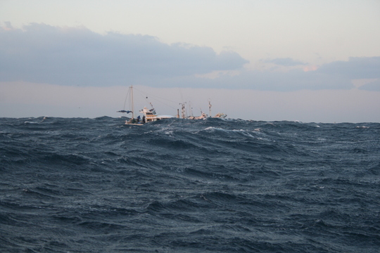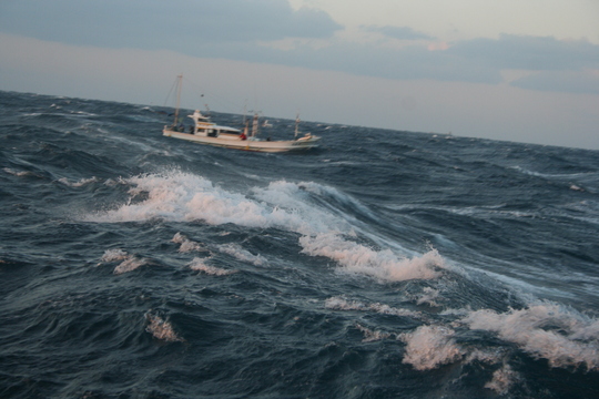 冒頭の写真は、間違いなく波高は3mを超えていますよね。僕は船