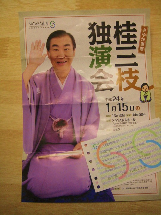 三枝さんは、中入り前とトリの2回登場しましたが、最後にやった「おやじの演歌」という新作落語で、本当に演歌を歌うというサプライズもあって面白かったです。