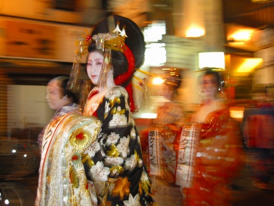 これに倣ってホステスたちが花魁(おいらん)やメイド、アニメの主人公など奇抜な衣装を身につけ、新地本通りを練り歩くのです。