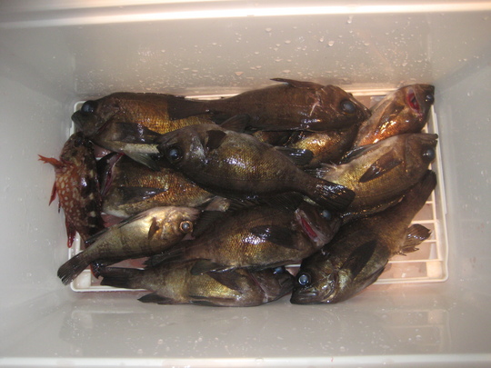 船長が言うように日が沈んでからメバルのアタリが活発になりましたが、もともととびきりの大型が少ないポイントなのでしょうか、ハラハラドキドキさせてくれる大型のメバルはいなくて、サビキもエサ釣りもあまり型に差はなかった、というのが結論です。