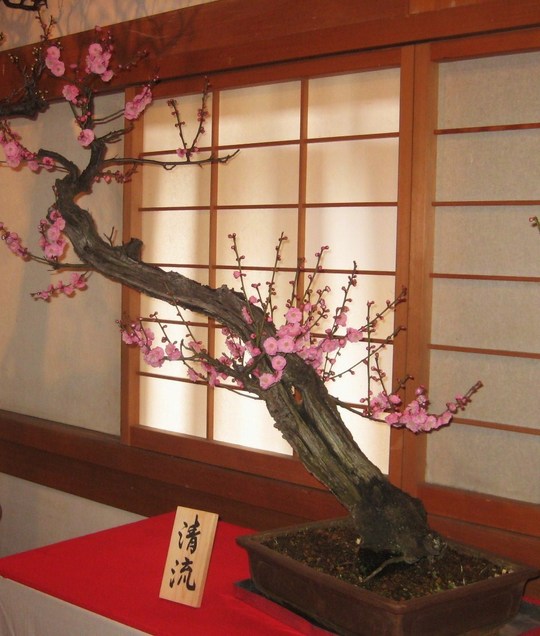 その郡山市の中心部、郡山城跡を舞台に開かれているのが第9回大和郡山 盆梅展です。会場には、大和郡山市の造園業者が丹精込めて育て上げた見事な枝ぶりの紅梅、白梅の盆梅が約120点展示されています。