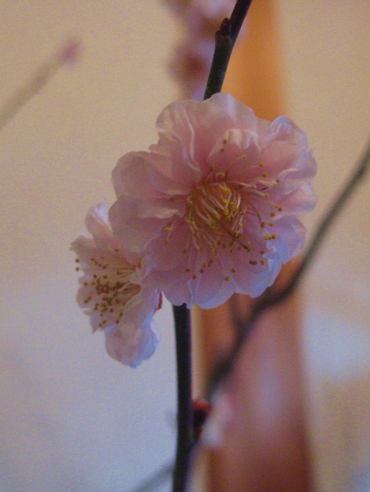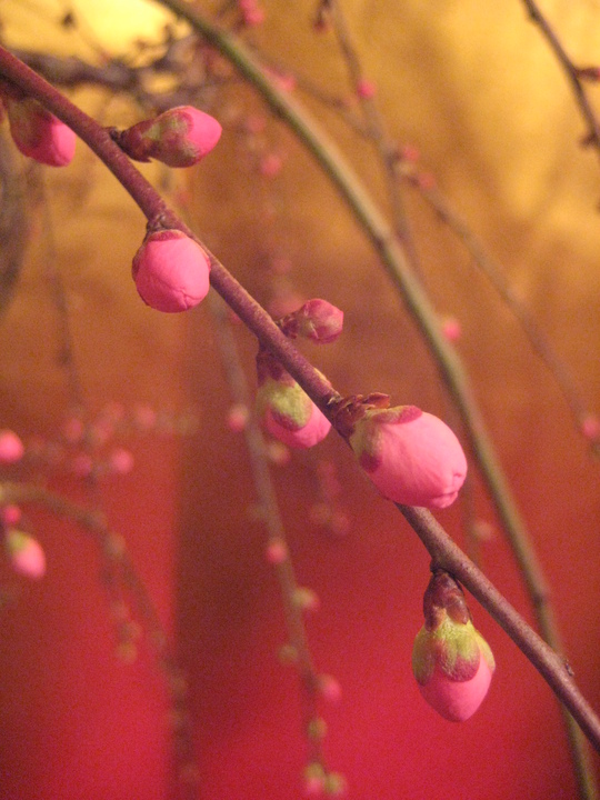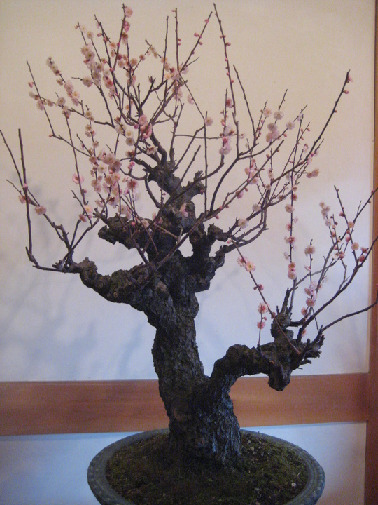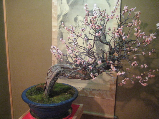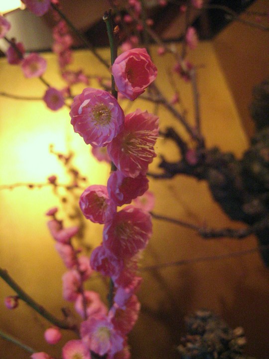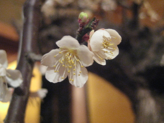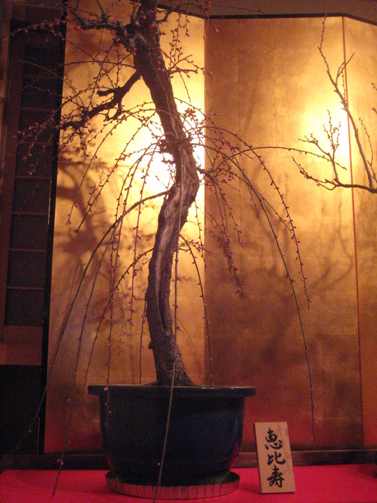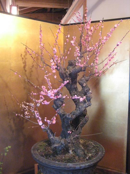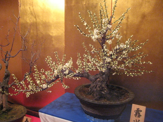 今年は少し開花が遅れていると聞きましたが、会場に入ると7、8分咲きでしょうか、開花している紅梅や白梅に交じって、ほどよい具合につぼみが散らばり、それは一幅の絵を見るようでした。