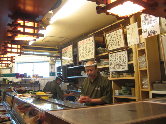 店内はこんな感じ。ネタケースにはキンキやノドグロ、水槽にはヒラメやトラフグ、ウマヅラハギなどが泳いでいました