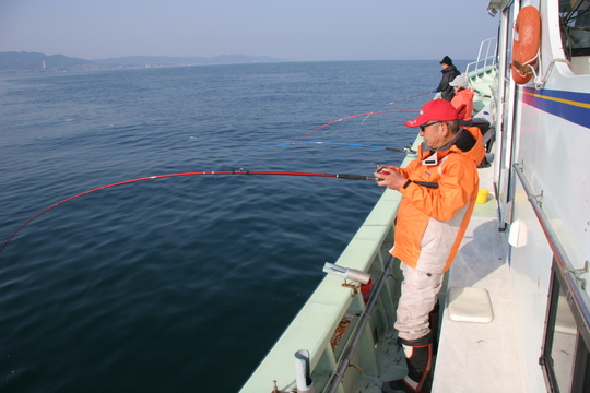 午後2時出船で、日が暮れるまでは淡路沖の魚礁でデカメバルを狙い、日が暮れてから神戸沖で半夜釣りという計画でした。