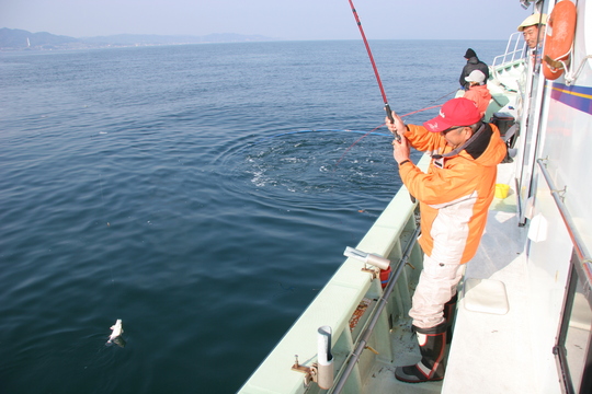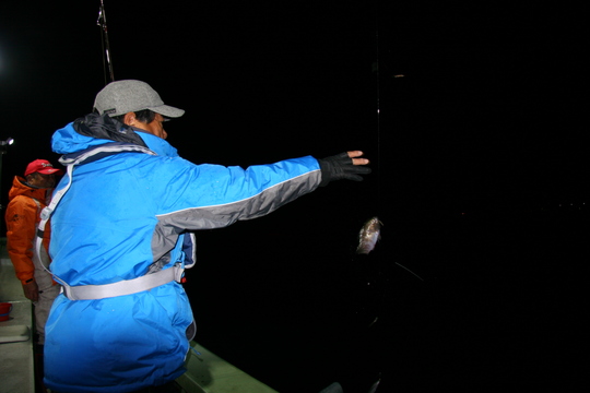 この日は潮が悪かったのか、淡路沖の水深50mの魚礁ではほとんどアタリがなく、デカメバルの代わりにデカガシラが釣れただけで、神戸沖へ移動しました。