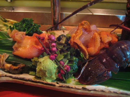 昨日は、徳島産の20kg余りのクエや、5kg近くあるメヌケ(アコウダイ)、宮崎産の1kg近いアワビに浜坂産のタグ付きのズワイガニ、3kg近くあるイセエビなど、それは見事な食材がそろっておりました。
