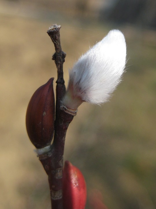 散歩の途中でネコヤナギを見つけました。すでに花穂が膨らみ始めています。