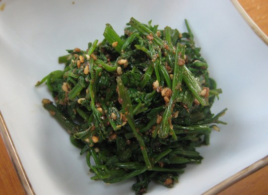 セリは、さっと茹でてゴマを振りかけていただきます。少しの青臭さと歯触りが好きなんです。土筆はきっと一度きりだろうけど、セリはまた摘みに出掛けようと思っています。