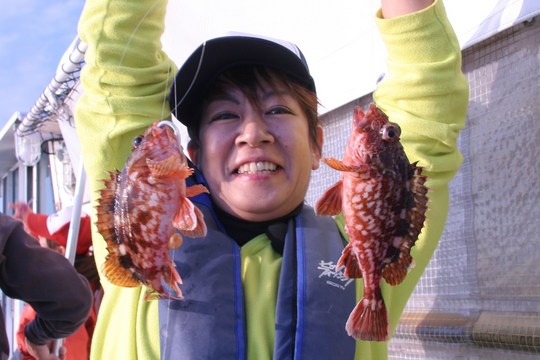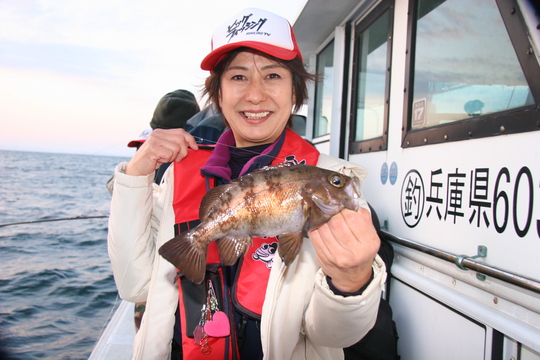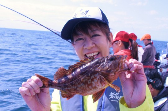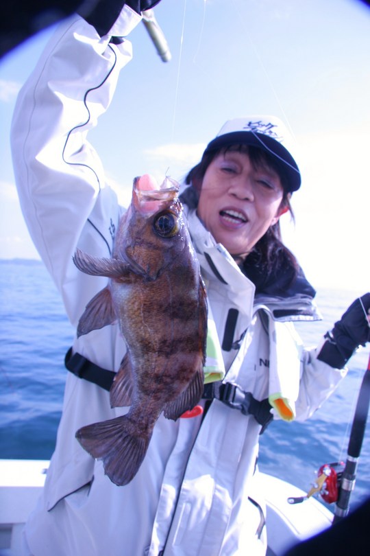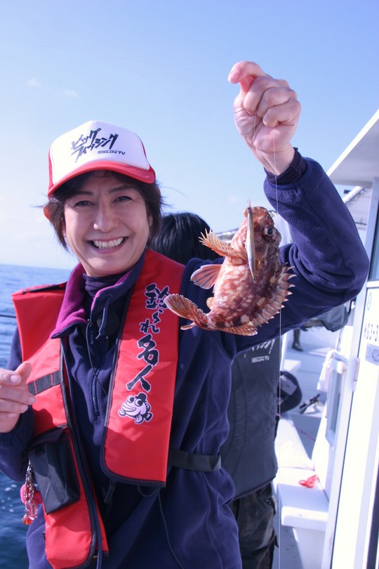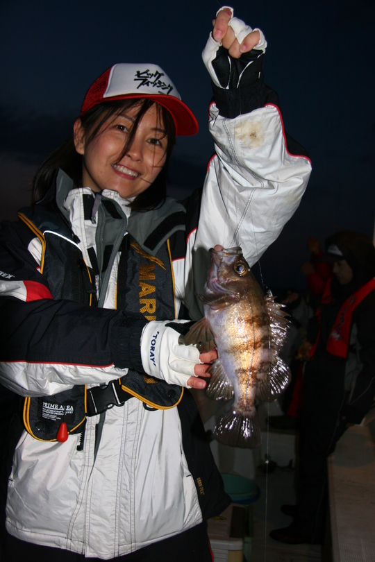 前半はガシラが2匹しか釣れず、どうしたのと慰められていた梅ちゃんこと、梅崎希美代さんが、後半猛烈に追いこんでメバルの3点掛けなどを披露、あれよ、あれよという間に優勝をさらってしまいました。