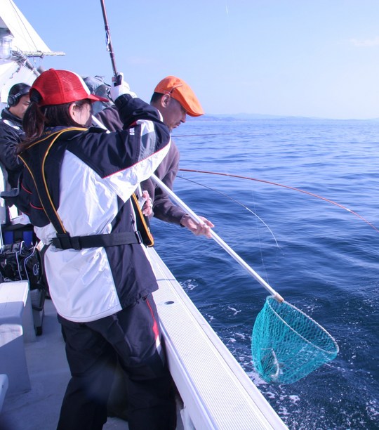 女が三人寄れば姦しいといわれるのに、この日の参加者は6人。さぞや船上はにぎやかに…と思われたのですが、意外に皆さん真剣で黙々と釣っておられたのには感心しました。