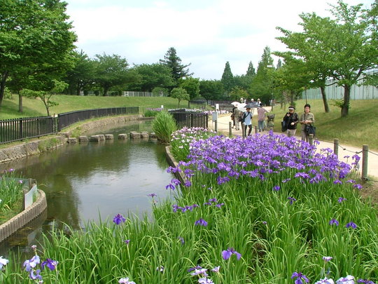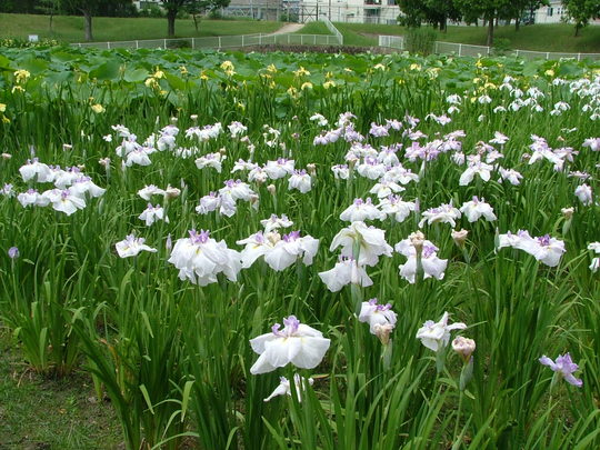南海高野線の白鷺駅のすぐそばに広さ約9万平方メートルの白鷺公園があります。野球場や運動広場、児童の遊戯コーナーのほかに遊水池である但馬池を利用して作られた花菖蒲園があるのです。