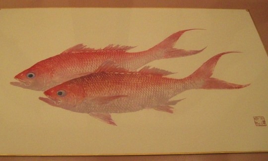直接法によるアート魚拓の草分け的存在で知られる松永正津さんと東洋魚拓・拓正会会員の作品展「アート魚拓の世界」を見に行って来ました。