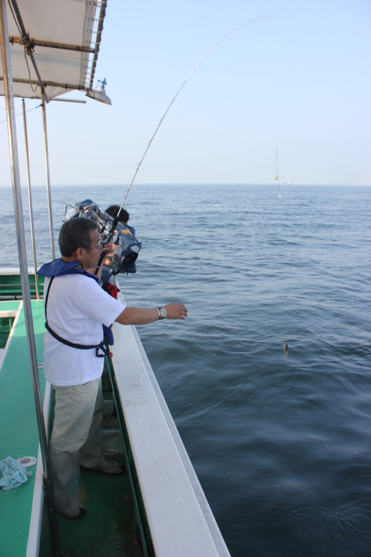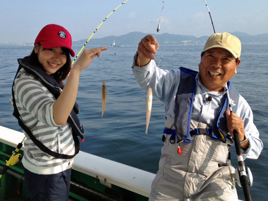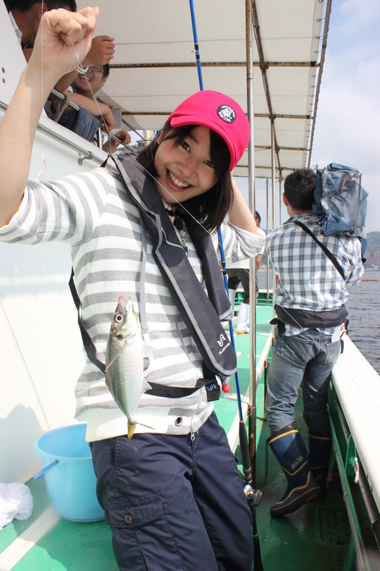 今井さん、こんにちは 見ましたよ 可愛いですね、15歳ピチピチですね、この歳でアオイソメを平気で触れるとは凄い、やっぱり親譲りの釣り好きですね。私も先日印南の木下丸でスルメイカつりに行ったのですが一投目で一パイ上げたところで船酔いが始まり後は最後まで寝たきり、残念☆*∞ 絶対船酔いしない方法って有りませんか。今井さん 何でもしますわ 宜しくお願いします。