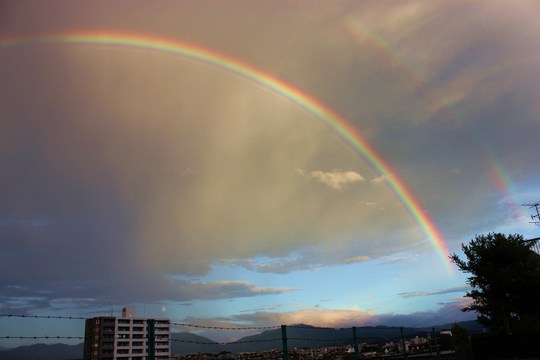 二重に出ている虹に神秘さを発見、でも、それが神様の恋愛証だという見方がオモシロイですね。