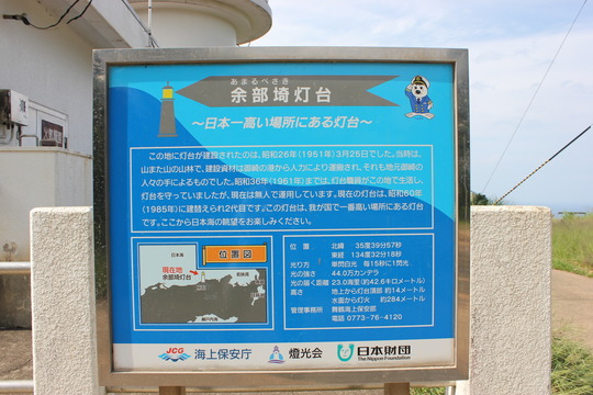 余部崎の灯台は、御崎の集落から5分ほど走ったところにあります。海面から約284mの高さにある灯台は、日本一高い場所にある灯台として有名です。
