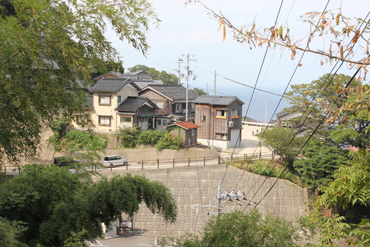 余部鉄橋から20分ほど、急峻な崖にへばりつくように家屋が散在する御崎地区へ着きました。よくぞこんなところに…それが第一印象でした。往時は俗世間から離れひっそりと隠れ住んでいたのでしょうが、田畑が耕せるような土地ではなく、その生活はどれだけ難渋したことでしょうか。 里へ出るにも細くて険しい山道をたどるか、海岸へ降りて小舟を使うしか手段のなかった僻地でした。