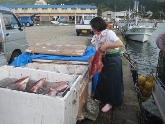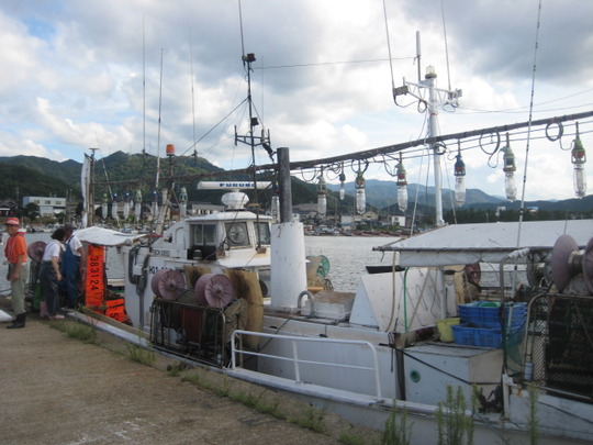 先日、但馬海岸の香住へイカ&マダイのリレー釣りに出かけたとき、港で待機していると一隻の漁船がやってきました。