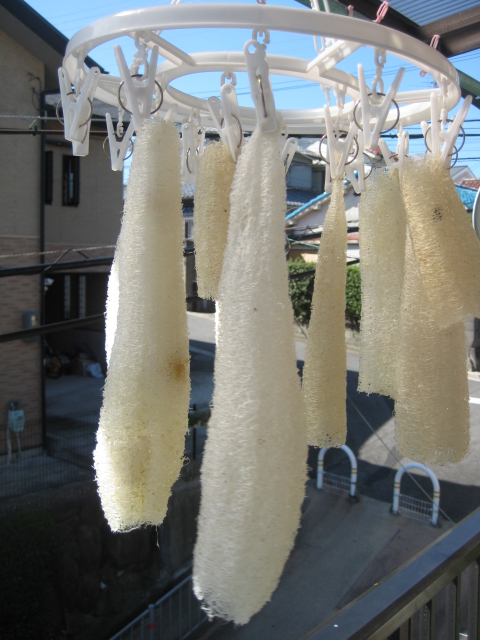 偶然?我が家にも先日、へちまたわしが届きました、50cm以上もある大きいのが…。