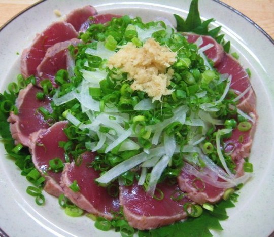 カツオのたたきは、土佐造りともいわれるように高知が発祥の地ですから、江戸では、たたきではなく造りで食べていたのでしょうかね?。