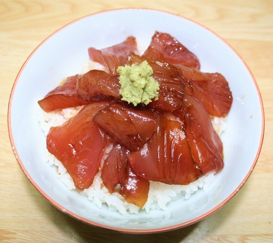 戻りガツオは、2kg近くある上物でしたし、ビンタも小型でしたがよく脂が乗っていて、美味しかったのです。ズケにしたビンタの身を熱いご飯の上に並べて下ろしワサビを天盛りにし、熱いお茶を掛けていただくと、何杯でもお代わりしたくなります。