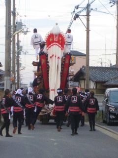 朝、散歩に出ると早い地区ではすでに地車(だんじり)の曳航が始まっていました。